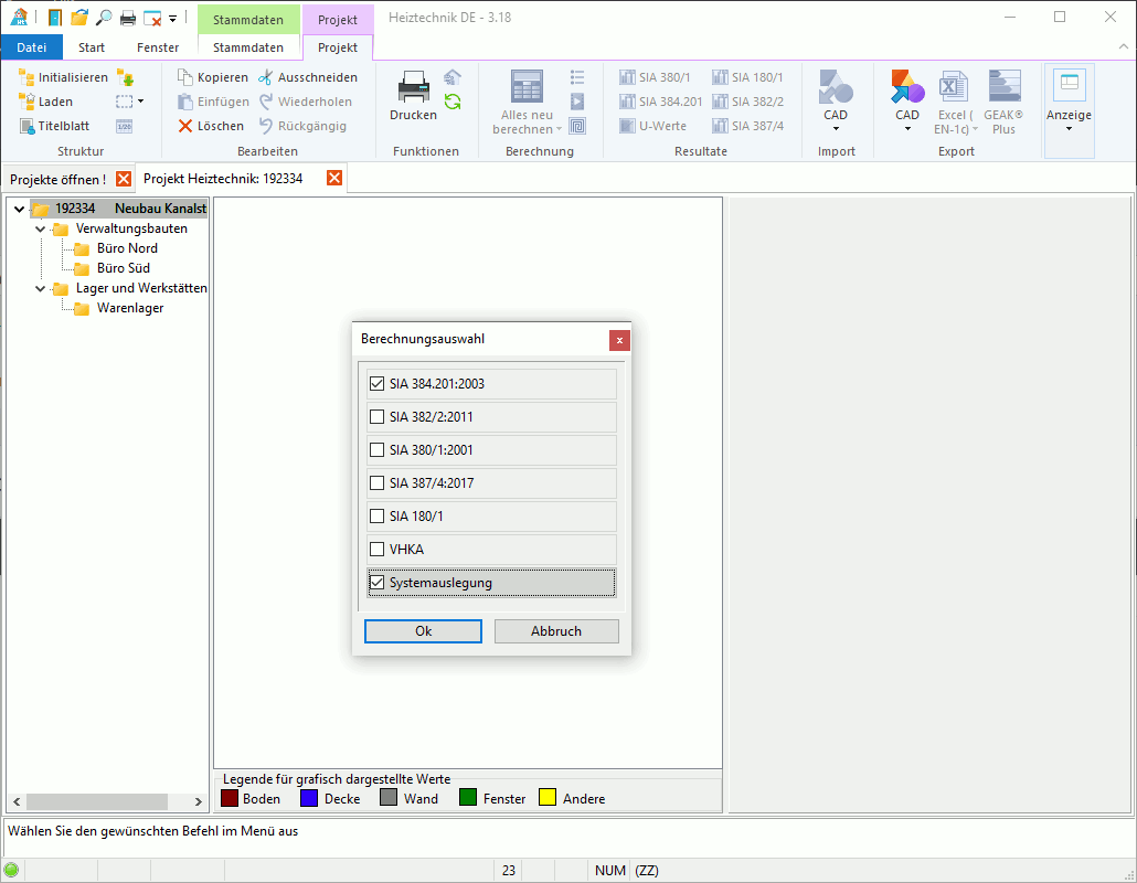Berechnungsprogramm nach SIA 384/2, SIA 380/1 für U-Wert, Dampfdiffusion, Minergie, Minergie-P